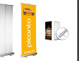 Our Aluminum Retractable Banner Stands are available with 10 mil indoor premium vinyl banners and are just as versatile as our “X-style” banner stands. The retractable stands are conveniently packed in a small bag and set up in a few easy steps.
